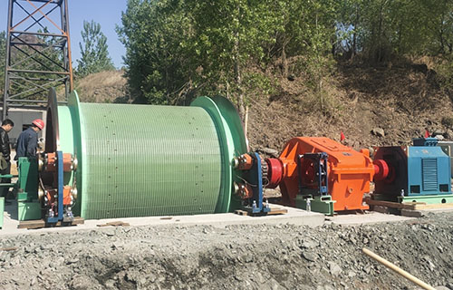 主軸兩端采用可調(diào)心雙列滾子軸承,效率高、拆卸維修方便。此本型系列礦井提升機實現(xiàn)了所有旋轉(zhuǎn)部分為全滾動傳動,故整機效率在百分之九十以上,屬節(jié)能型礦井提升機。