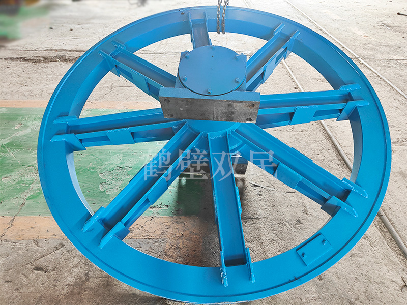 3、鑿井天輪用于立井鑿時(shí)懸吊吊盤及穩(wěn)繩。